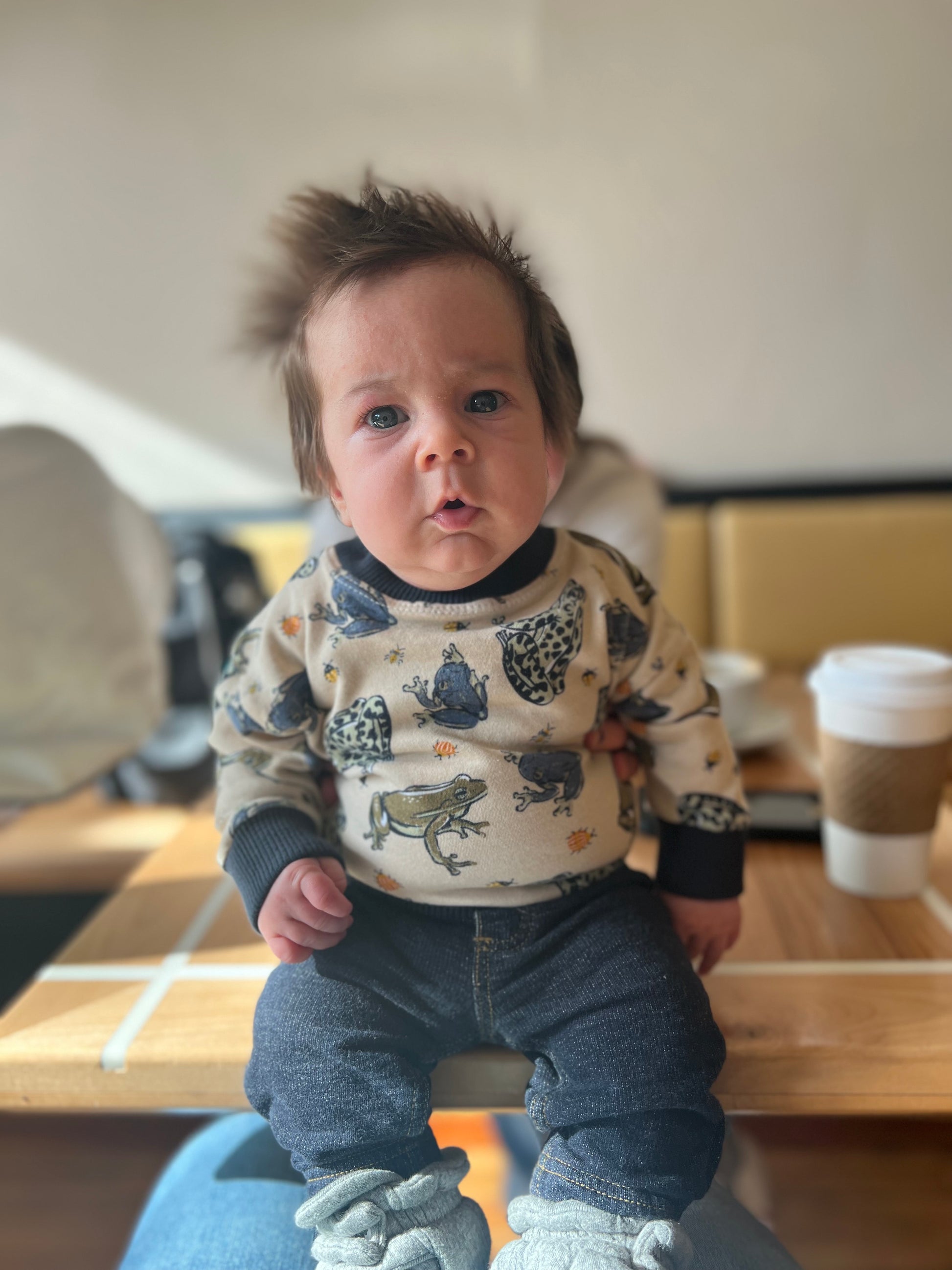Hop into style with this ribbit-ing sweatshirt! Made with a perfect weight for any season, this crewneck sweatshirt features a playful frog design and navy blue ribbing. Your little frog lover will love the quirky design and you'll appreciate the quality and versatility.